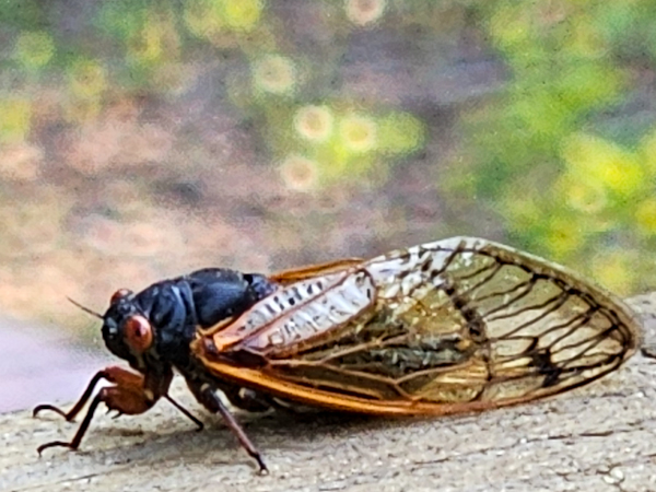 All the birds and squirrels are eating cicadas as fast as they can, but they are still everywhere, flying around and landing on everything, including people. Everyone is sick of the deafening sound of the male cicadas singing, and sick of the bugs themselves. There's nothing to do but wait it out. Then we can look forward to Horse Flies and the regular cicadas later in the summer. The butterflies seem especially agitated, and no wonder, with millions of cicadas zooming around in their airspace.
