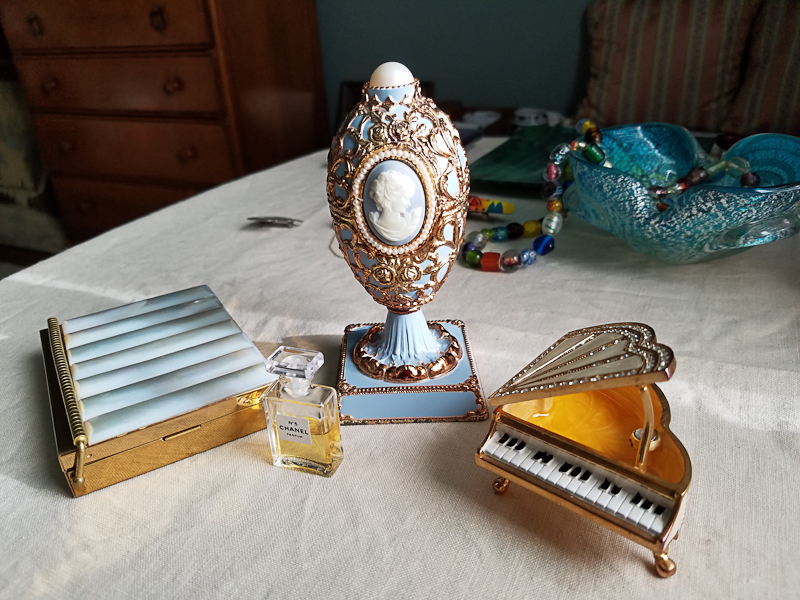 It was a gorgeous day and I had a lot of run driving around to several estate sales. I'm getting pickier as I fill up my available space, and my purchases are getting smaller and smaller but they still make me happy. The one sale where I bought anything had apparently been the home of Russians, and was filled with beautiful and unusual things. I didn't buy a lot, but I love what I bought.