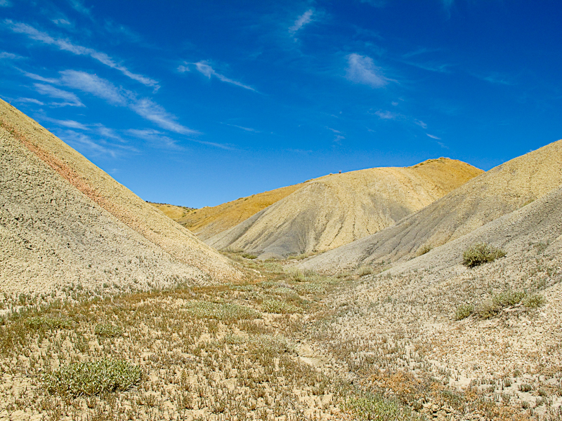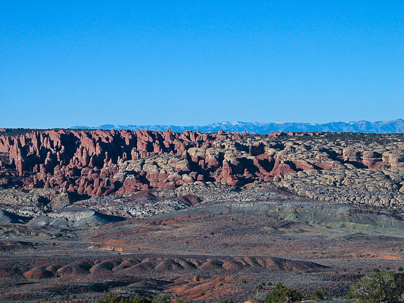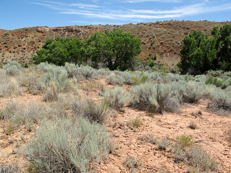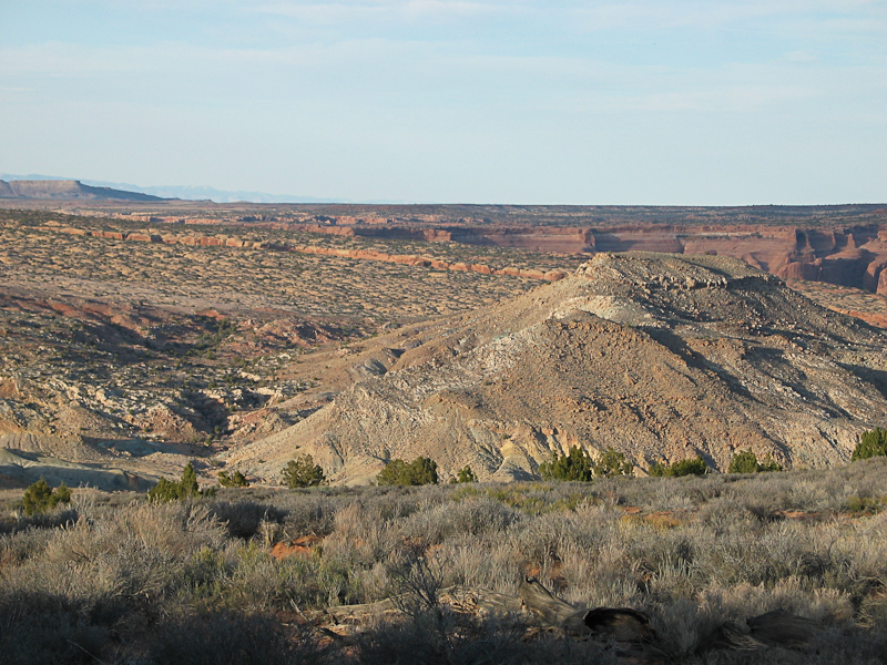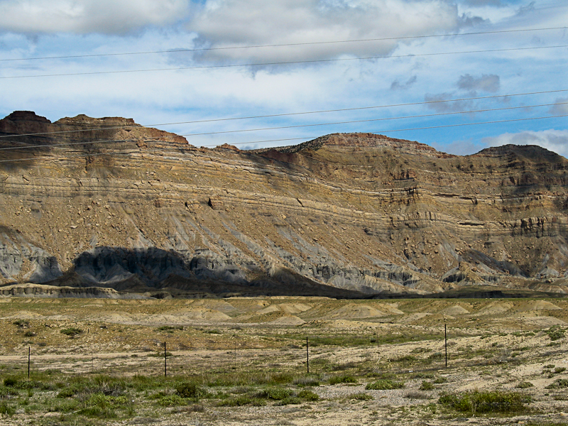 The invading sea left deep deposits of shale ranging in color from light gray to black. Fossils of marine life are common in it. There are numerous anomalous members of this immense deposit, but only one exists in this region, the Ferron Sandstone member. This consists of light brown sediments that were carried into the sea by a river. It, too, hosted shallow-marine life. Mancos Shale is exposed over large areas of canyon country, and is especially prominent as strangely eroded crenelations along the base of the Book Cliffs.