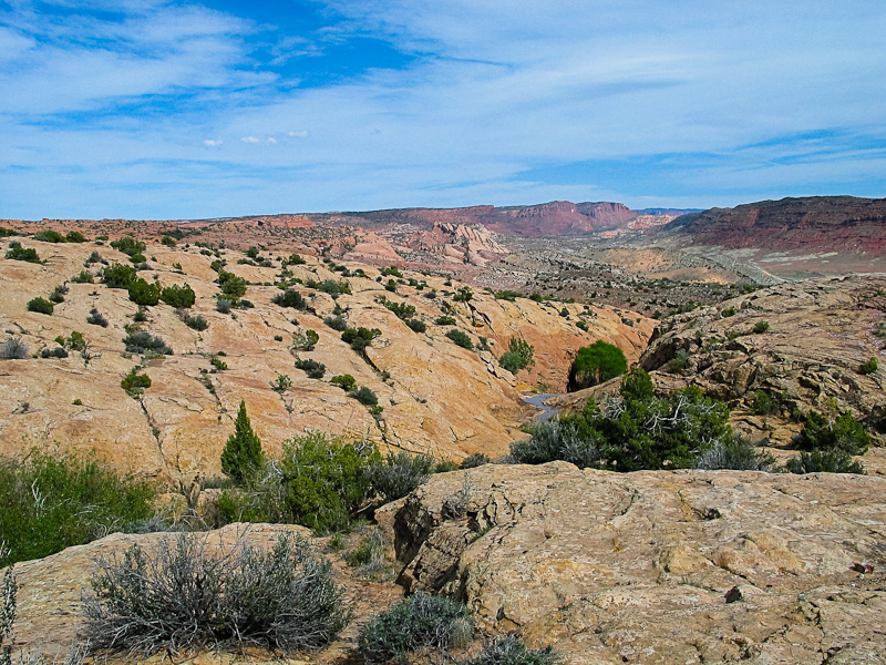 This light brown sandstone was deposited by the freshwater rivers, streams and shallow lakes bordering an inland sea that was invading the region due to a gradual rise in global sea level. The region hosted prolific plant and animal life. Slowly, this deposit was buried beneath marine shales. Within the canyon country region covered by this book, Dakota Sandstone is not widely exposed.