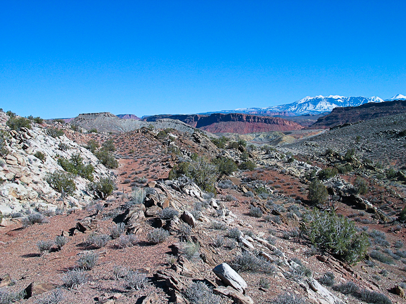 This deposit varies considerably from place to place but represents a region dominated by lakes, swamps, rivers and streams. Sporadic volcanism in nearby regions colored the deposits with mineral-rich volcanic ash, providing blue-gray coloration to some Chinle layers, while others are varicolored sandstones. The long lifeless period followed the end of the Chinle deposition.