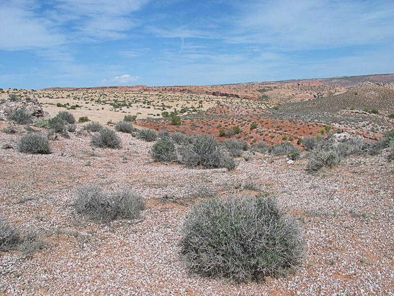 These two deposits are essentially the same but were given different names in adjacent areas of the canyon country region. They are also closely similar to the Brushy Basin member of the Morrison Formation in that they are layered, "painted desert" deposits, with one exception. Either at their base, or within them - depending on the geologist or paleontologist telling the story - there is an anomalous layer of very hard, coarse-grained sandstone that varies in thickness. Conventional theory does not explain this strange deposit. The Cedar Mountain-Burro Canyon depositional environment was also very favorable to life.