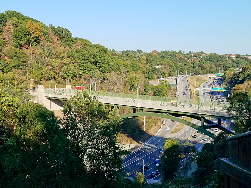 They blew up what was left of the old one 2 years ago, (they had a contest - the winner got to press the detonation button). and life has been hard ever since. Not only did we lose direct access to the park, but traffic has been difficult. Losing the bridge completely changed traffic patterns through these tight neighborhoods, especially at rush hour, when the bridge is essentially a part of the entrance ramp onto I-376 outbound. Every sidestreet and alley has become choked with people trying to find a way around, but there really isn't any. The bridge spans a chasm between the steep cliffs of the long Run that comes down from the Squirrel Hill Tunnels, with the interstate at the bottom of the valley. You can't get there from here except by a couple of routes, and everyone else is going the same way.